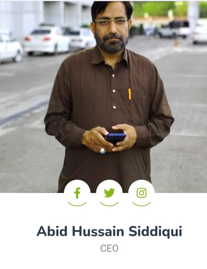Mr. Abid Hussain Siddiqui brings with him the rich experience which he was fortunate to acquire by serving various prestigious organisations in various capacity like Pakistan Pilgrims Society, Khoja (Pirhai) Shia Isna Asheri Jammat and Fatimiyah Education Network. His success in Community Service is grossly indebted to notable mentors :